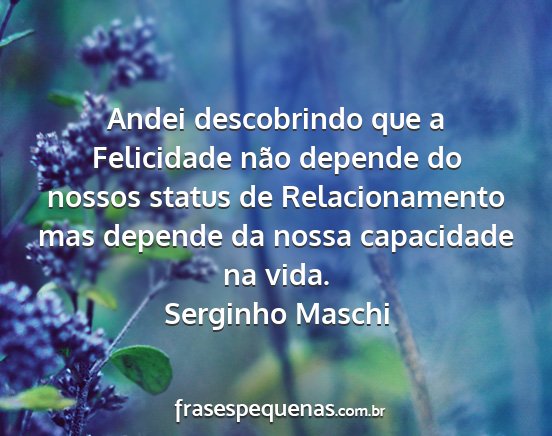 Andei descobrindo que a Felicidade não depende do nossos status de Relacionamento mas depende da nossa capacidade na vida.Serginho Maschi