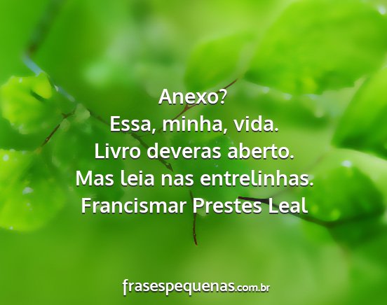 Anexo? Essa, minha, vida. Livro deveras...