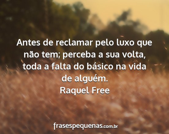 Antes de reclamar pelo luxo que não tem; perceba a sua volta, toda a falta do básico na vida de alguém.Raquel Free
