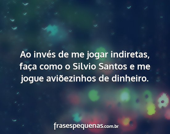Ao invés de me jogar indiretas, faça como o Silvio Santos e me jogue aviõezinhos de dinheiro.