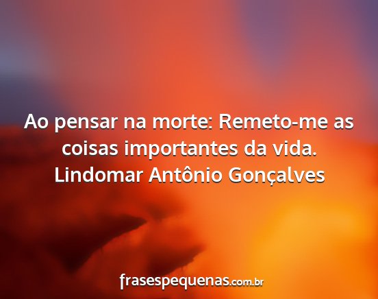Ao pensar na morte: Remeto-me as coisas importantes da vida.