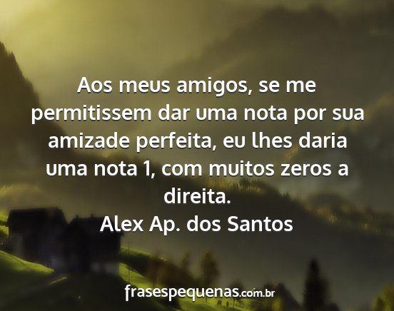 Aos meus amigos, se me permitissem dar uma nota por sua amizade perfeita, eu lhes daria uma nota 1, com muitos zeros a direita.Alex Ap. dos Santos
