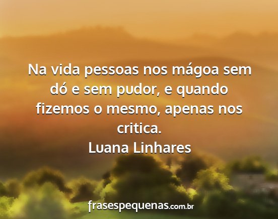 Na vida pessoas nos mágoa sem dó e sem pudor, e quando fizemos o mesmo, apenas nos critica.Luana Linhares