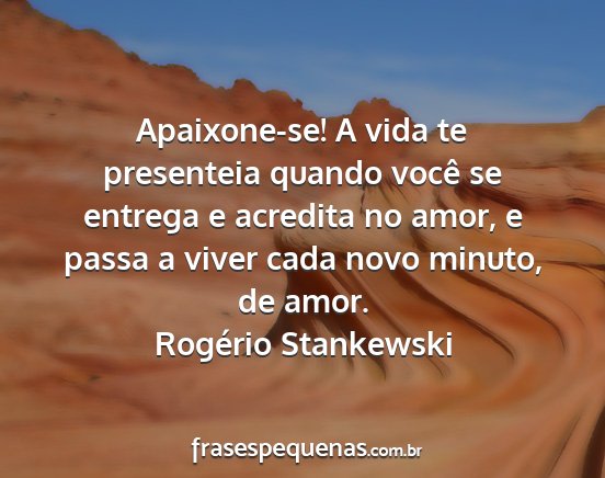 Apaixone-se! A vida te presenteia quando você se entrega e acredita no amor, e passa a viver cada novo minuto, de amor.Rogério Stankewski