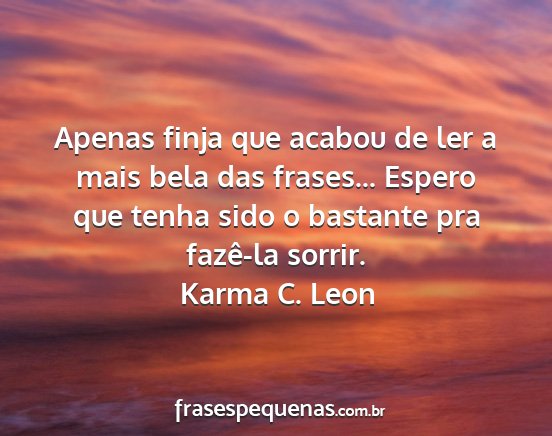 Apenas finja que acabou de ler a mais bela das frases... Espero que tenha sido o bastante pra fazê-la sorrir.Karma C. Leon