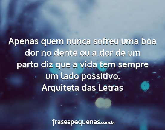 Apenas quem nunca sofreu uma boa dor no dente ou a dor de um parto diz que a vida tem sempre um lado possitivo.Arquiteta das Letras