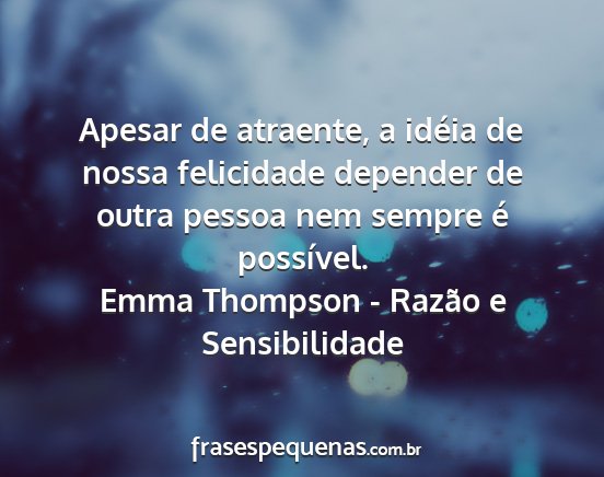 Apesar de atraente, a idéia de nossa felicidade depender de outra pessoa nem sempre é possível.Emma Thompson - Razão e Sensibilidade