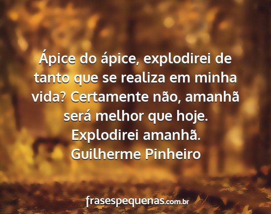 Ápice do ápice, explodirei de tanto que se realiza em minha vida? Certamente não, amanhã será melhor que hoje. Explodirei amanhã.Guilherme Pinheiro