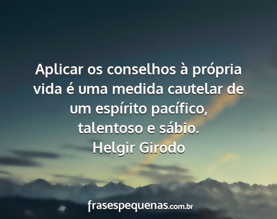Aplicar os conselhos à própria vida é uma medida cautelar de um espírito pacífico, talentoso e sábio.Helgir Girodo