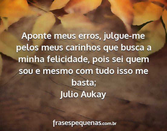 Aponte meus erros, julgue-me pelos meus carinhos que busca a minha felicidade, pois sei quem sou e mesmo com tudo isso me basta;Julio Aukay