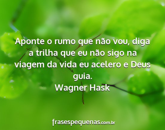 Aponte o rumo que não vou, diga a trilha que eu não sigo na viagem da vida eu acelero e Deus guia.Wagner Hask