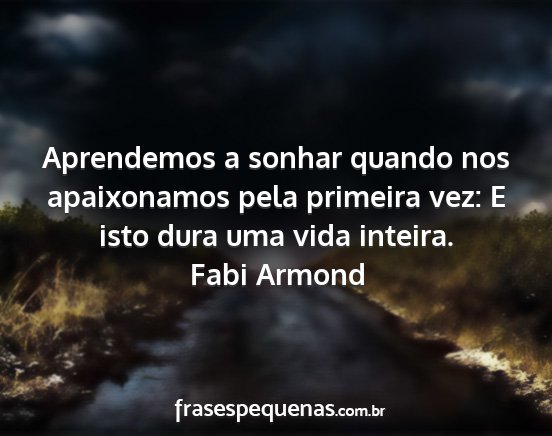 Aprendemos a sonhar quando nos apaixonamos pela primeira vez: E isto dura uma vida inteira.Fabi Armond