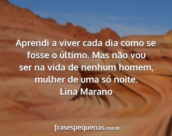 Aprendi a viver cada dia como se fosse o último. Mas não vou ser na vida de nenhum homem, mulher de uma só noite.Lina Marano