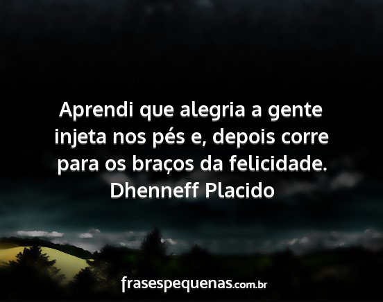 Aprendi que alegria a gente injeta nos pés e, depois corre para os braços da felicidade.Dhenneff Placido