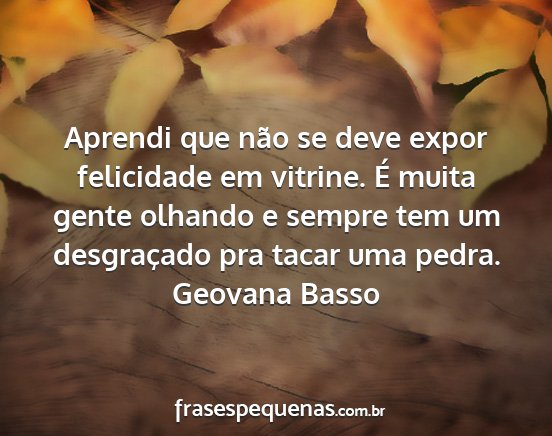 Aprendi que não se deve expor felicidade em vitrine. É muita gente olhando e sempre tem um desgraçado pra tacar uma pedra.Geovana Basso
