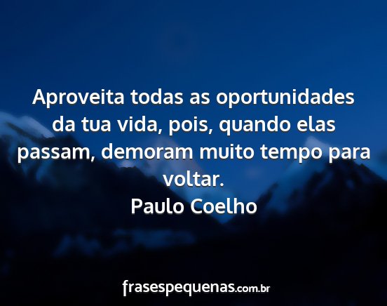 Aproveita todas as oportunidades da tua vida, pois, quando elas passam, demoram muito tempo para voltar.Paulo Coelho