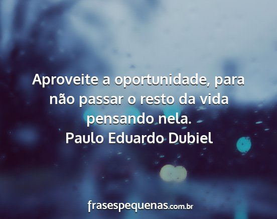 Aproveite a oportunidade, para não passar o resto da vida pensando nela.
