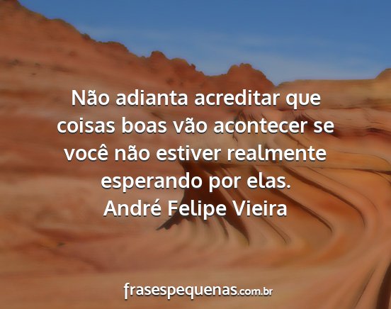 Não adianta acreditar que coisas boas vão acontecer se você não estiver realmente esperando por elas.André Felipe Vieira