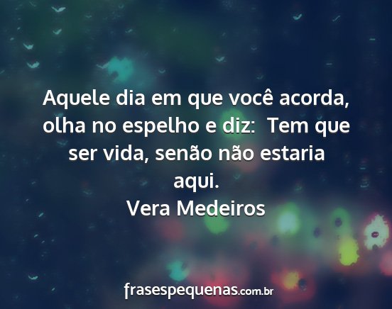 Aquele dia em que você acorda, olha no espelho e diz: Tem que ser vida, senão não estaria aqui.Vera Medeiros