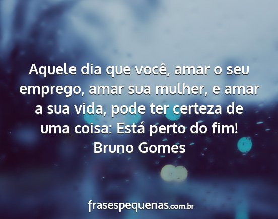 Aquele dia que você, amar o seu emprego, amar sua mulher, e amar a sua vida, pode ter certeza de uma coisa: Está perto do fim!Bruno Gomes