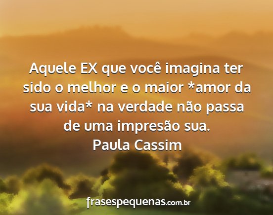Aquele EX que você imagina ter sido o melhor e o maior *amor da sua vida* na verdade não passa de uma impresão sua.Paula Cassim