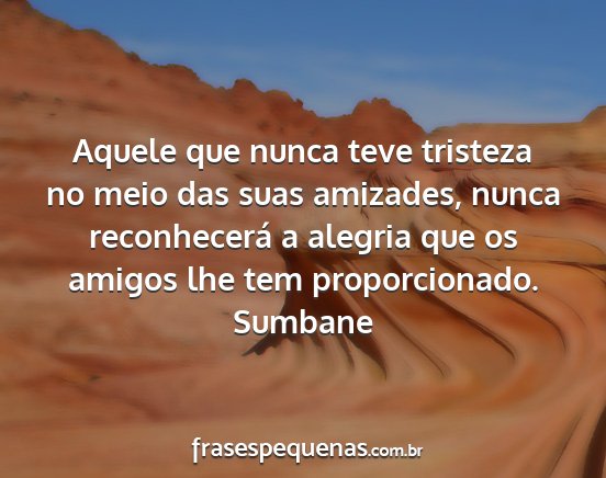 Aquele que nunca teve tristeza no meio das suas amizades, nunca reconhecerá a alegria que os amigos lhe tem proporcionado.Sumbane