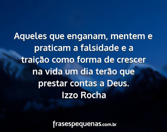 Aqueles que enganam, mentem e praticam a falsidade e a traição como forma de crescer na vida um dia terão que prestar contas a Deus.Izzo Rocha