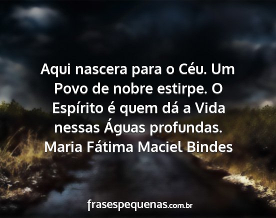 Aqui nascera para o Céu. Um Povo de nobre estirpe. O Espírito é quem dá a Vida nessas Águas profundas.Maria Fátima Maciel Bindes