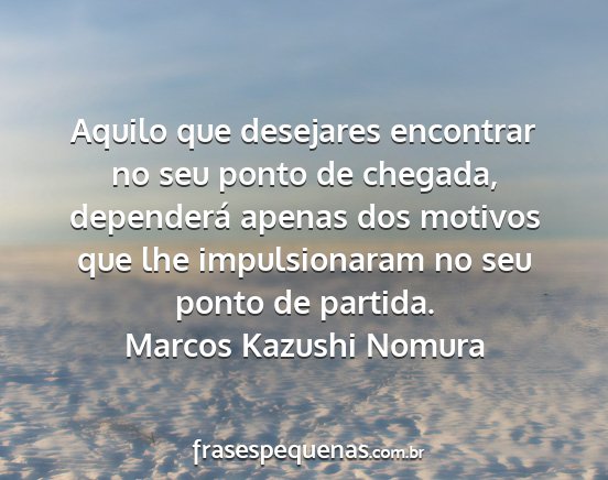 Aquilo que desejares encontrar no seu ponto de chegada, dependerá apenas dos motivos que lhe impulsionaram no seu ponto de partida.Marcos Kazushi Nomura