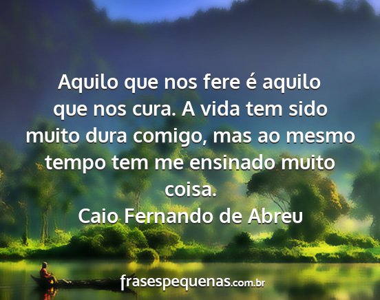 Aquilo que nos fere é aquilo que nos cura. A vida tem sido muito dura comigo, mas ao mesmo tempo tem me ensinado muito coisa.Caio Fernando de Abreu