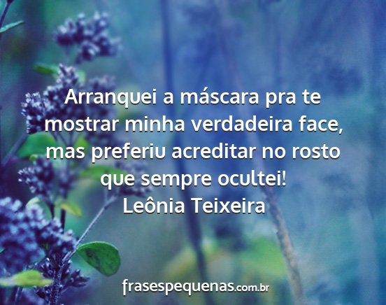 Arranquei a máscara pra te mostrar minha verdadeira face, mas preferiu acreditar no rosto que sempre ocultei!Leônia Teixeira