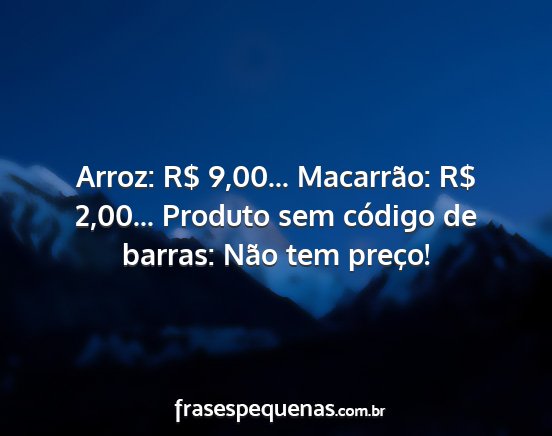 Arroz: R$ 9,00... Macarrão: R$ 2,00... Produto sem código de barras: Não tem preço!