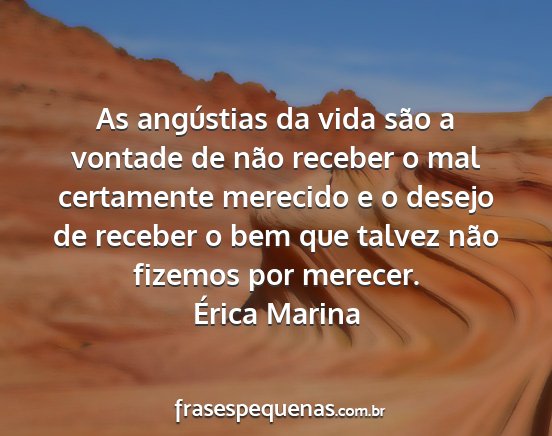 As angústias da vida são a vontade de não receber o mal certamente merecido e o desejo de receber o bem que talvez não fizemos por merecer.Érica Marina