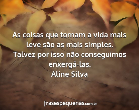 As coisas que tornam a vida mais leve são as mais simples. Talvez por isso não conseguimos enxergá-las.Aline Silva