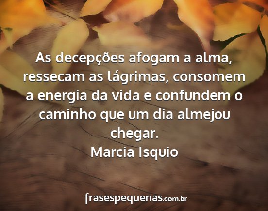 As decepções afogam a alma, ressecam as lágrimas, consomem a energia da vida e confundem o caminho que um dia almejou chegar.Marcia Isquio