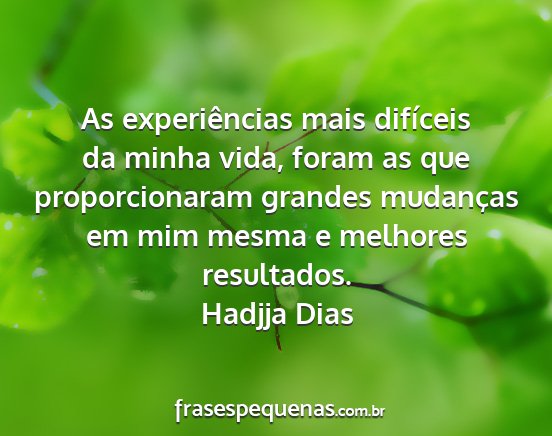 As experiências mais difíceis da minha vida, foram as que proporcionaram grandes mudanças em mim mesma e melhores resultados.Hadjja Dias