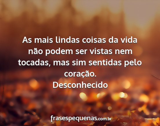 As mais lindas coisas da vida não podem ser vistas nem tocadas, mas sim sentidas pelo coração.Desconhecido