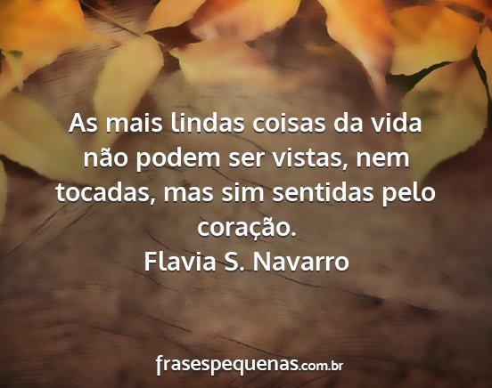 As mais lindas coisas da vida não podem ser vistas, nem tocadas, mas sim sentidas pelo coração.Flavia S. Navarro