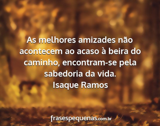 As melhores amizades não acontecem ao acaso à beira do caminho, encontram-se pela sabedoria da vida.Isaque Ramos