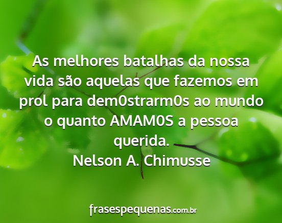 As melhores batalhas da nossa vida são aquelas que fazemos em prol para dem0strarm0s ao mundo o quanto AMAM0S a pessoa querida.Nelson A. Chimusse
