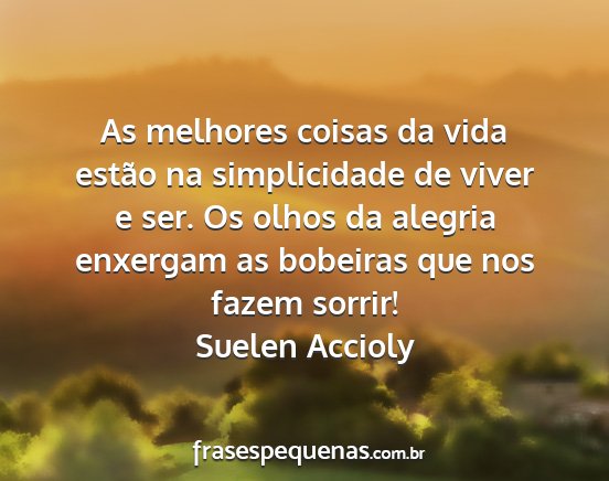 As melhores coisas da vida estão na simplicidade de viver e ser. Os olhos da alegria enxergam as bobeiras que nos fazem sorrir!Suelen Accioly