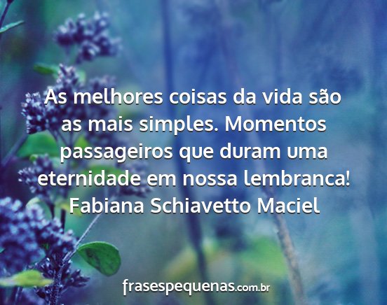 As melhores coisas da vida são as mais simples. Momentos passageiros que duram uma eternidade em nossa lembranca!Fabiana Schiavetto Maciel
