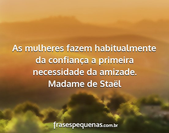As mulheres fazem habitualmente da confiança a primeira necessidade da amizade.