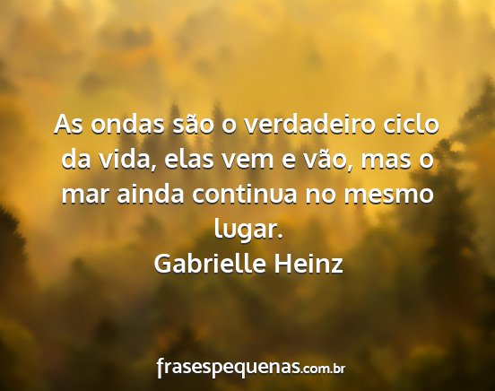 As ondas são o verdadeiro ciclo da vida, elas vem e vão, mas o mar ainda continua no mesmo lugar.Gabrielle Heinz