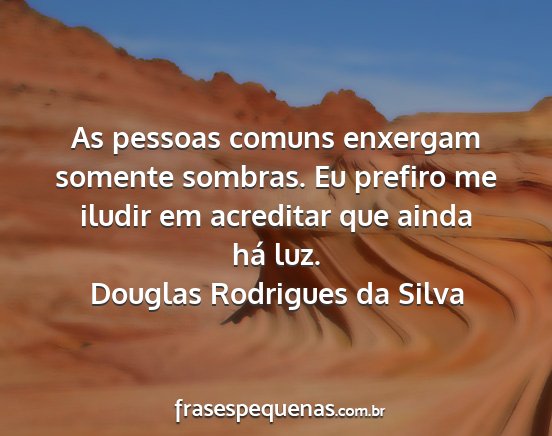 As pessoas comuns enxergam somente sombras. Eu prefiro me iludir em acreditar que ainda há luz.Douglas Rodrigues da Silva