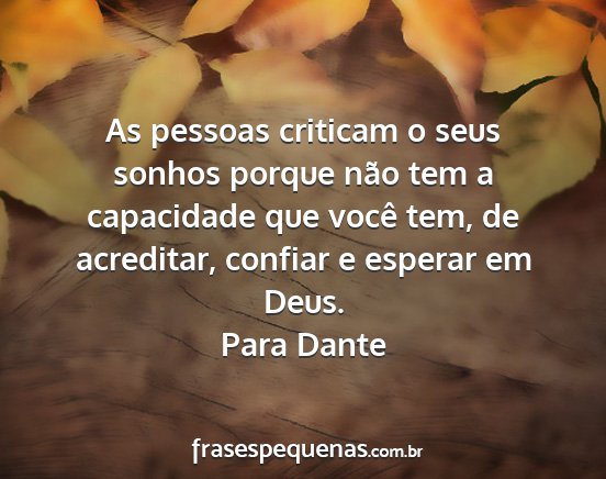 As pessoas criticam o seus sonhos porque não tem a capacidade que você tem, de acreditar, confiar e esperar em Deus.Para Dante