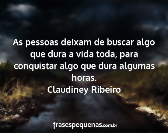 As pessoas deixam de buscar algo que dura a vida toda, para conquistar algo que dura algumas horas.Claudiney Ribeiro