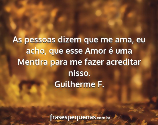 As pessoas dizem que me ama, eu acho, que esse Amor é uma Mentira para me fazer acreditar nisso.Guilherme F.