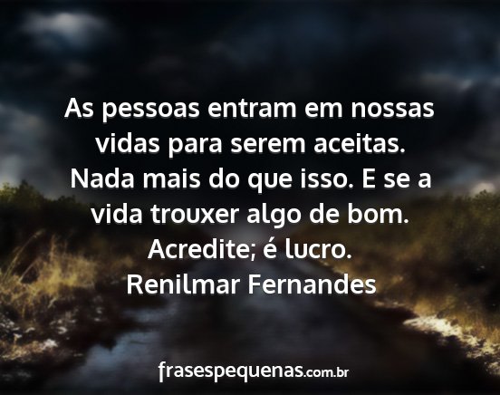 Acredite; é lucro.Renilmar Fernandes
