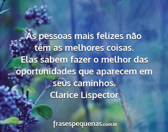Elas sabem fazer o melhor das oportunidades que aparecem em seus caminhos.Clarice Lispector